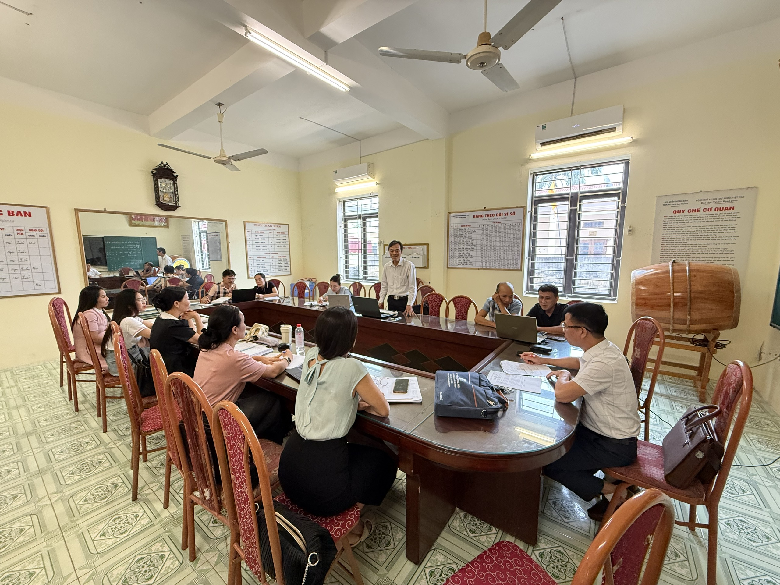 Thực hiện kế hoạch, nhiệm vụ năm học 2025-2026; trường THCS Hải Thành đã triển khai nhiều hoạt động trong hè để chuẩn bị các điều kiện cho năm học mới; các tổ, nhóm chuyên môn đã tổ chức nhiều hoạt động, tổ chức nghiên cứu chương trình, xây dựng KHGD, phân phối chương trình các môn học; xây dựng ma trận, bản đặc tả đề kiểm tra định kỳ; tổ chức các buổi sinh hoạt chuyên (SHCM), lựa chọn 02 chuyên đề (01 chuyên đề môn Toán 9, 01 chuyên đề môn KHTN 9) để nghiên cứu bài học, thảo luận, xây dựng KHBD và cử 02 đ/c giáo viên lên lớp thực hiện tiết dạy minh họa (Thầy Nguyễn Văn Tặng thực hiện tiết dạy môn Toán 9, Cô Vũ Thị Hoàng Yến thực hiện tiết dạy môn KHTN 9 với nội dung Hóa học).