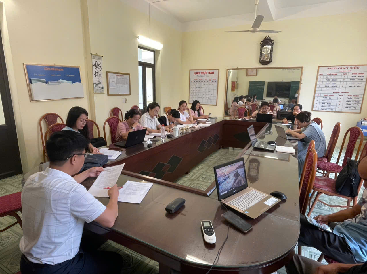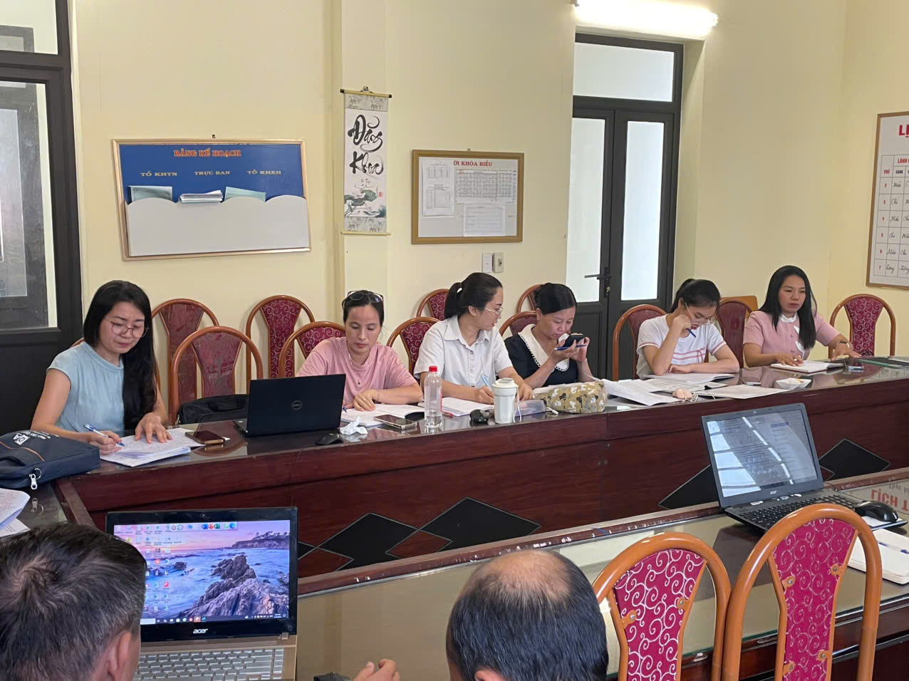 Sau khi dự giờ, tổ KHTN đã tổ chức rút kinh nghiệm dưới sự chỉ đạo của đ/c Nguyễn Thị Chi - Phó Hiệu trưởng nhà trường, đ/c Bùi Hữu Doanh - Tổ trưởng chuyên môn chủ trì, lấy ý kiến của từng đ/c giáo viên và kết luận về phương pháp, kỹ thuật dạy học nhằm phát triển phẩm chất, năng lực học sinh; đề nghị nhóm KHTN chuẩn bị lên lớp chủ đề môn KHTN vào tuần sau.